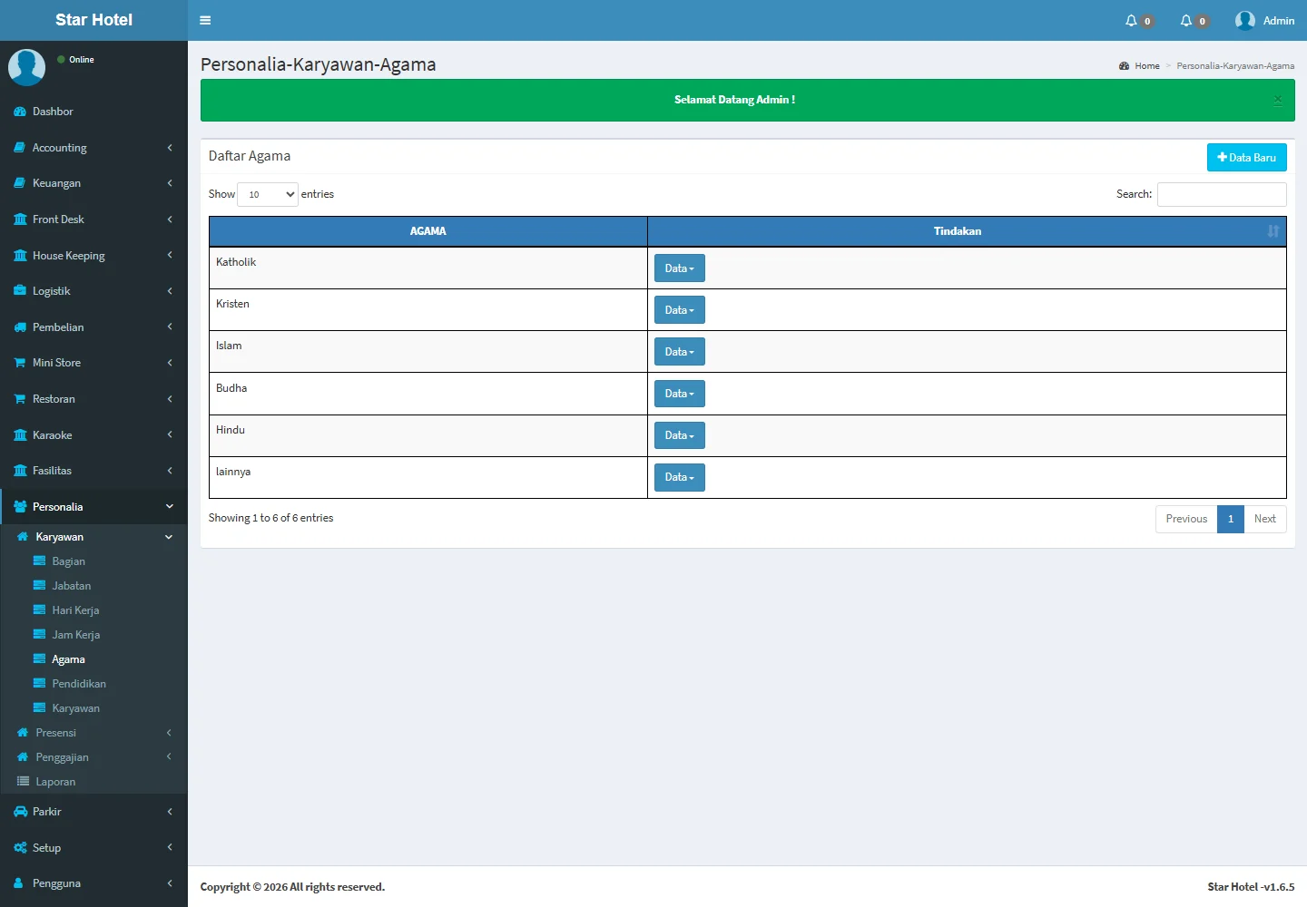 Kelola data agama karyawan untuk kebutuhan administrasi HR dan referensi dalam pengelolaan cuti hari besar keagamaan.