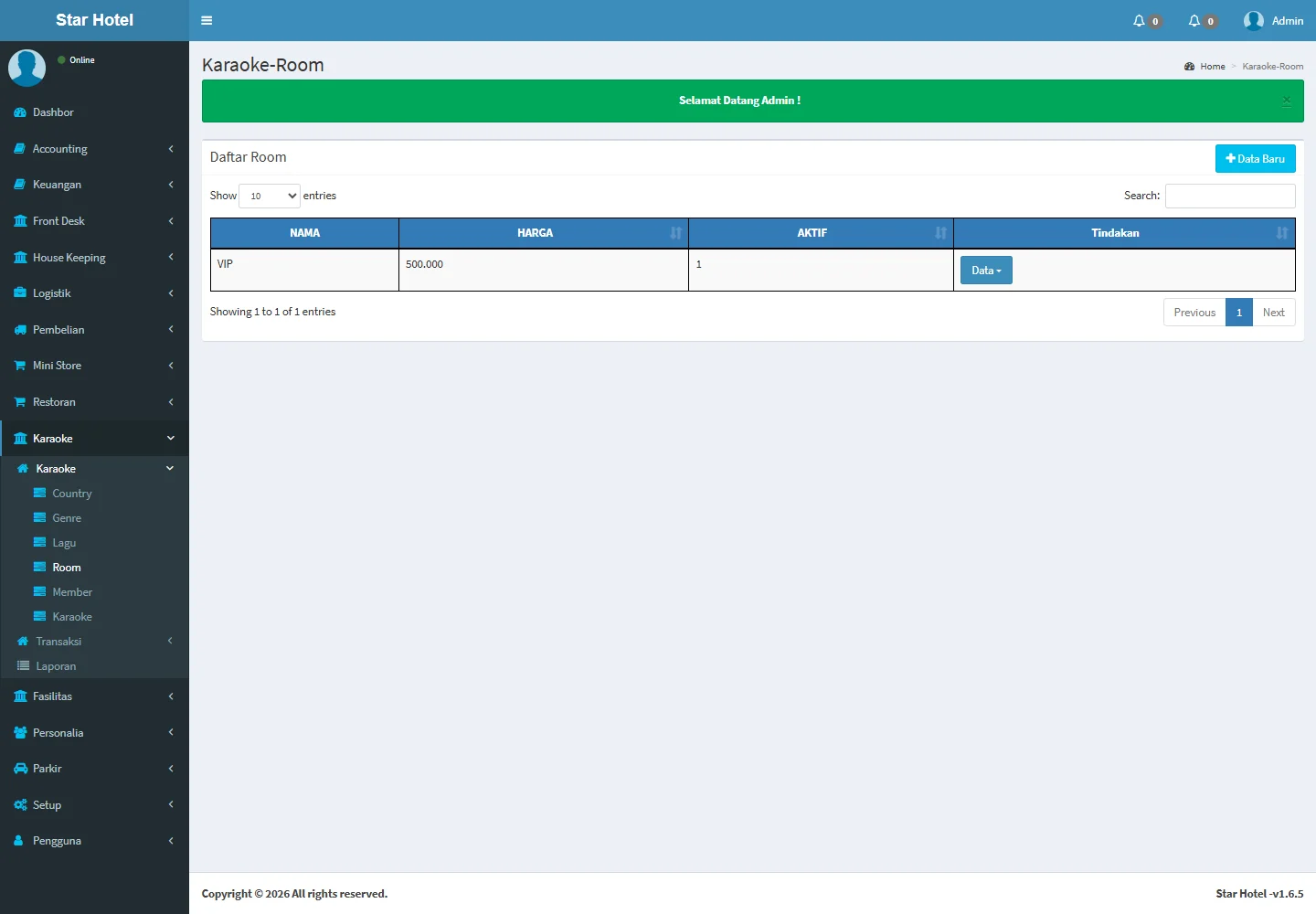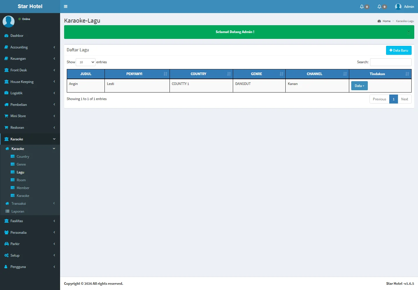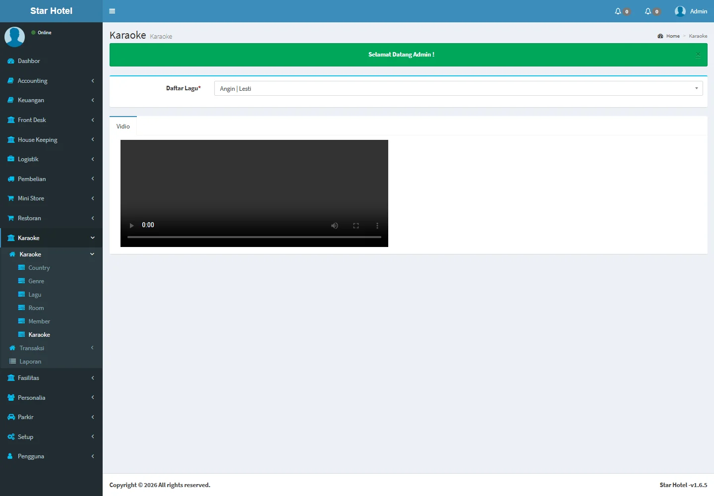 Kelola fasilitas karaoke hotel secara profesional. Dari manajemen lagu, room, member, hingga transaksi dan kasir — semua dalam satu sistem terintegrasi.