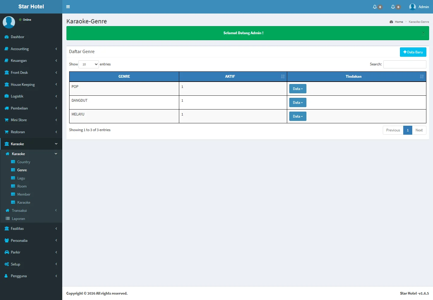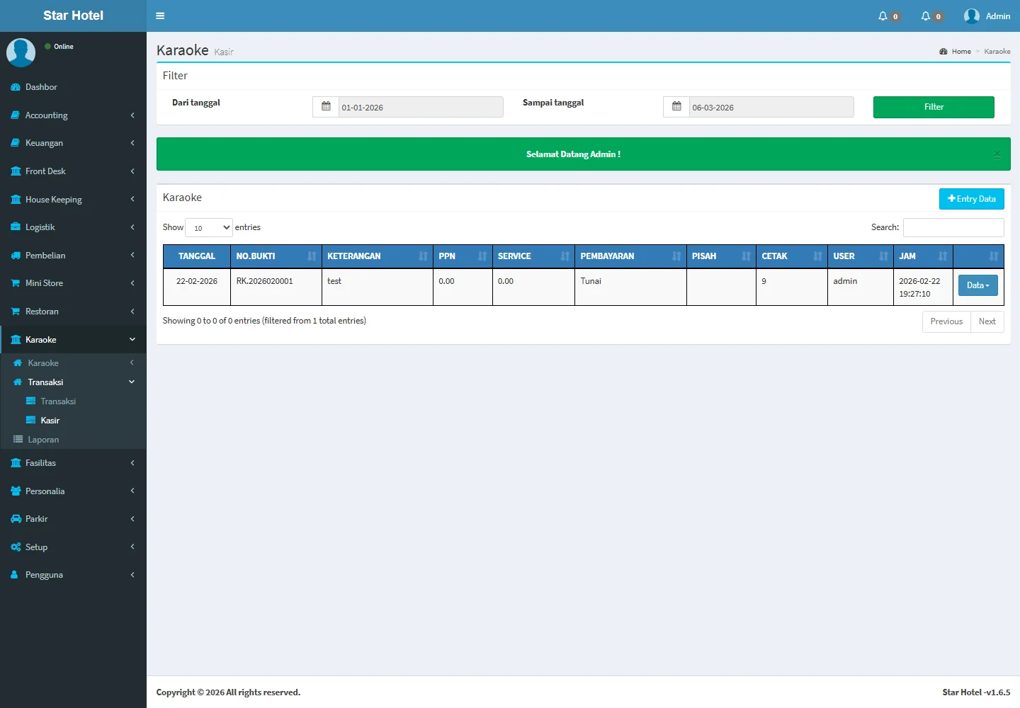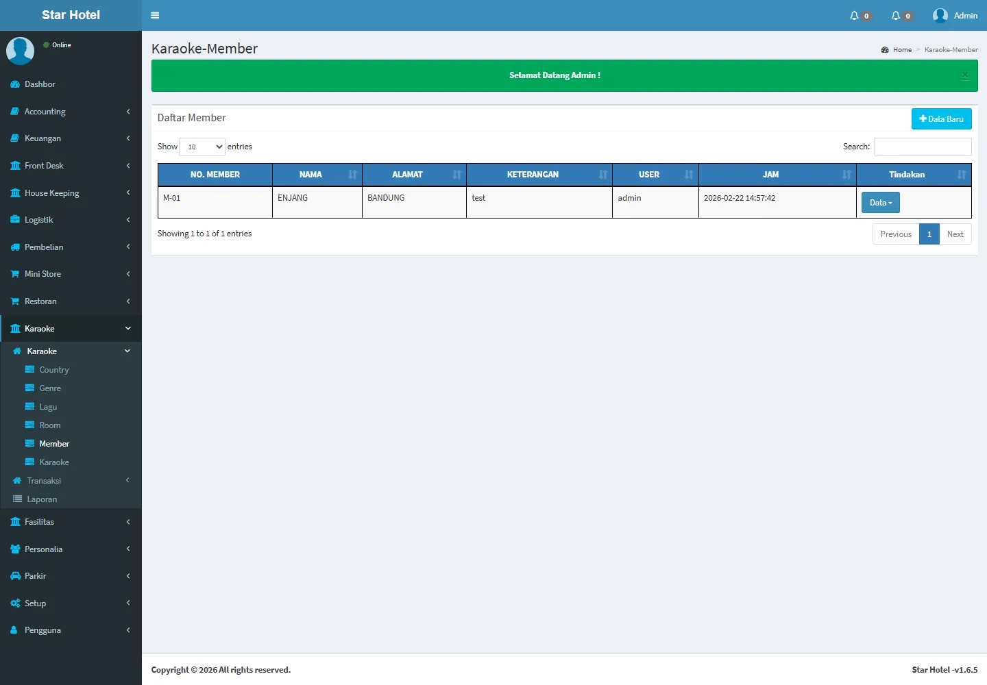 Kelola fasilitas karaoke hotel secara profesional. Dari manajemen lagu, room, member, hingga transaksi dan kasir — semua dalam satu sistem terintegrasi.