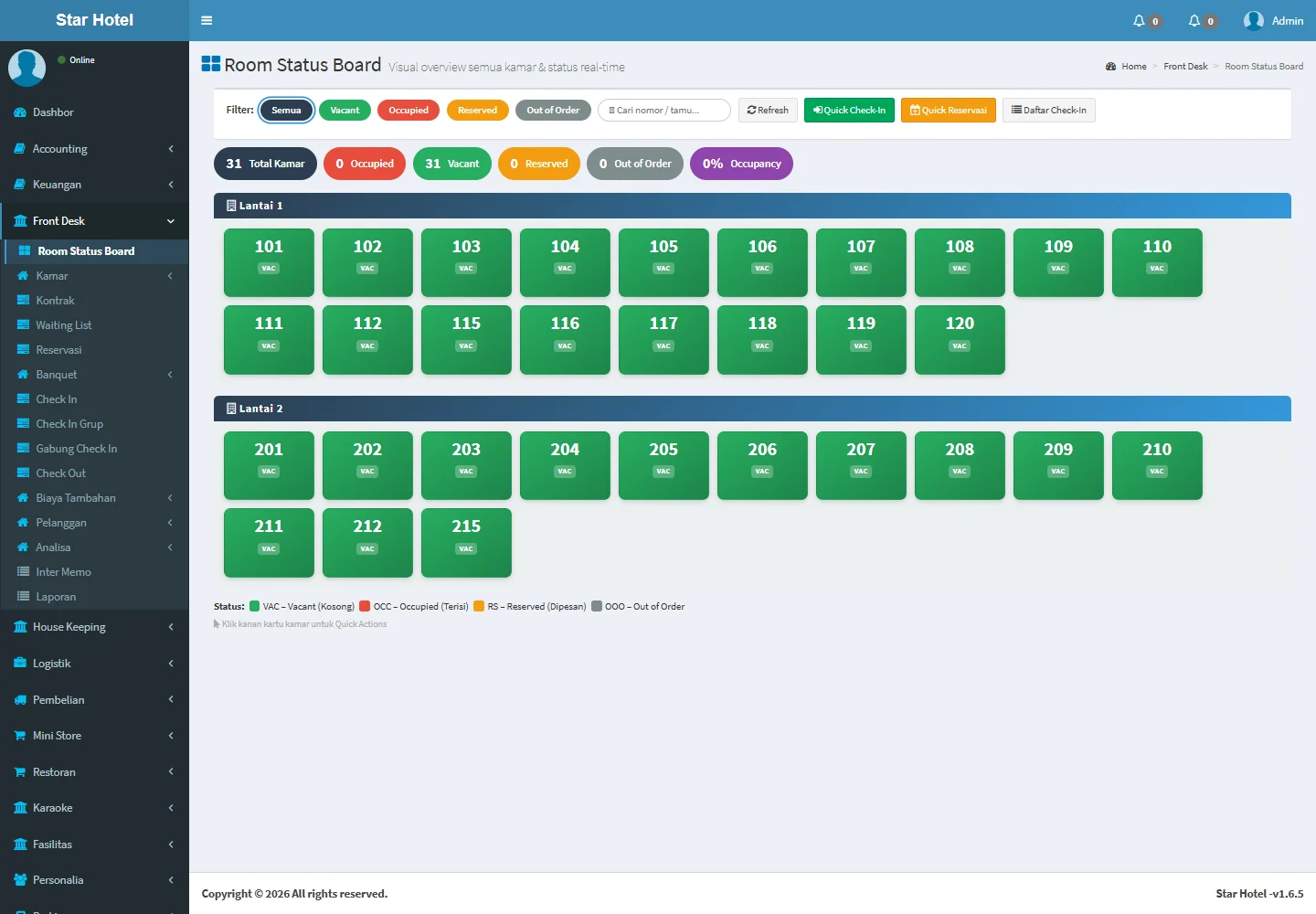Setelah semuanya siap, staf Anda bisa langsung menggunakan sistem untuk operasional hotel sehari-hari.